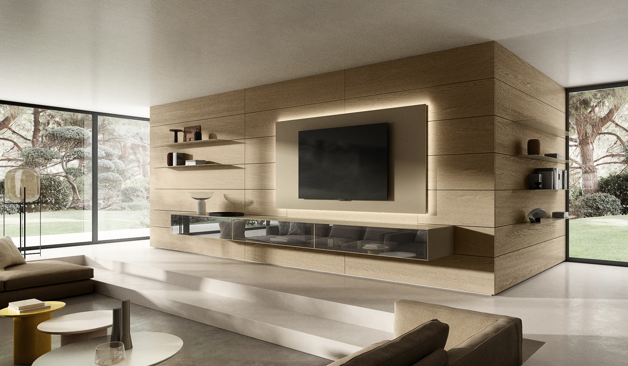 Kombiniert mit LEDs, Regalen oder TV-Elementen wird sie zum funktionalen Highlight.
