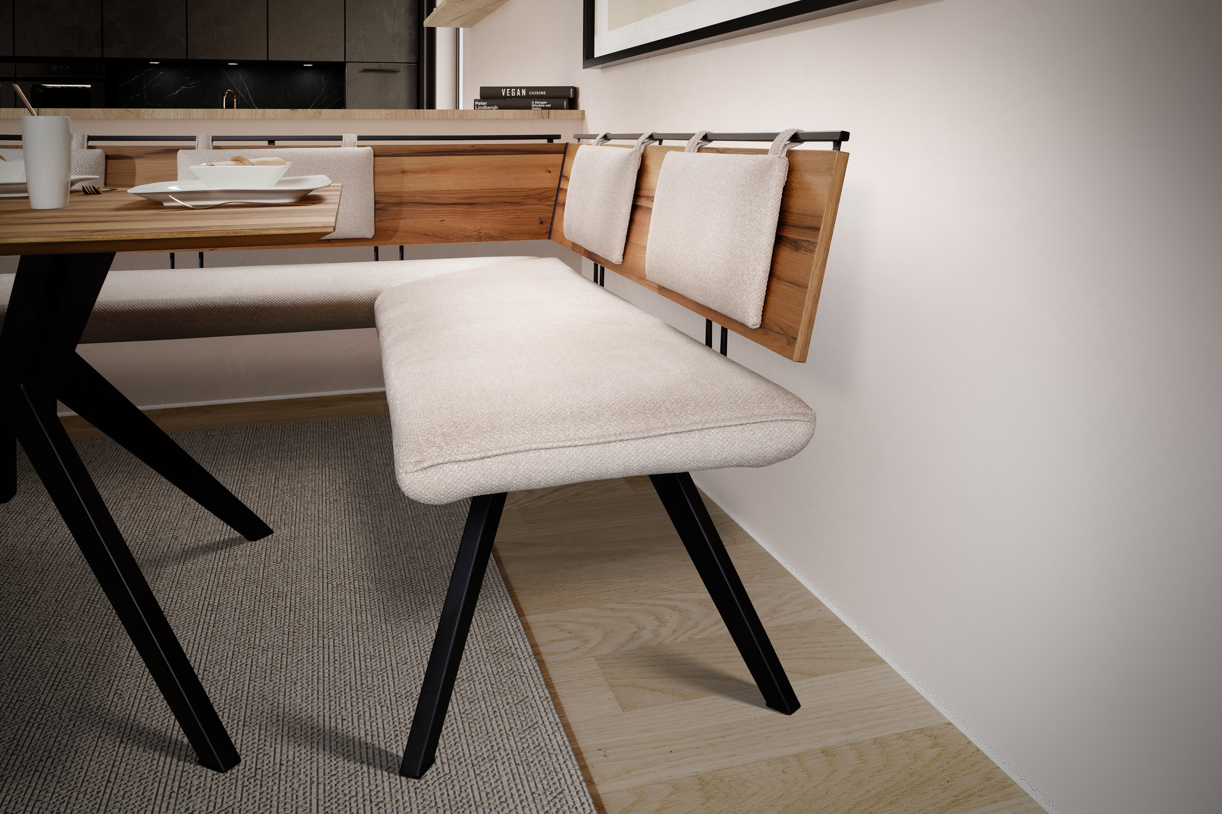 Die Modellserie Siena überzeugt durch Ihre vielfältigen Gestaltungsoptionen und lässt sich an individuelle Bedürfnisse perfekt anpassen. Siena präsentiert zwei Modellvarianten: Siena 100 mit gepolsterter Lehne und Tiefeneinzug für ein angenehmes Sitzgefühl und Siena 200 mit markanter Massivlehne.