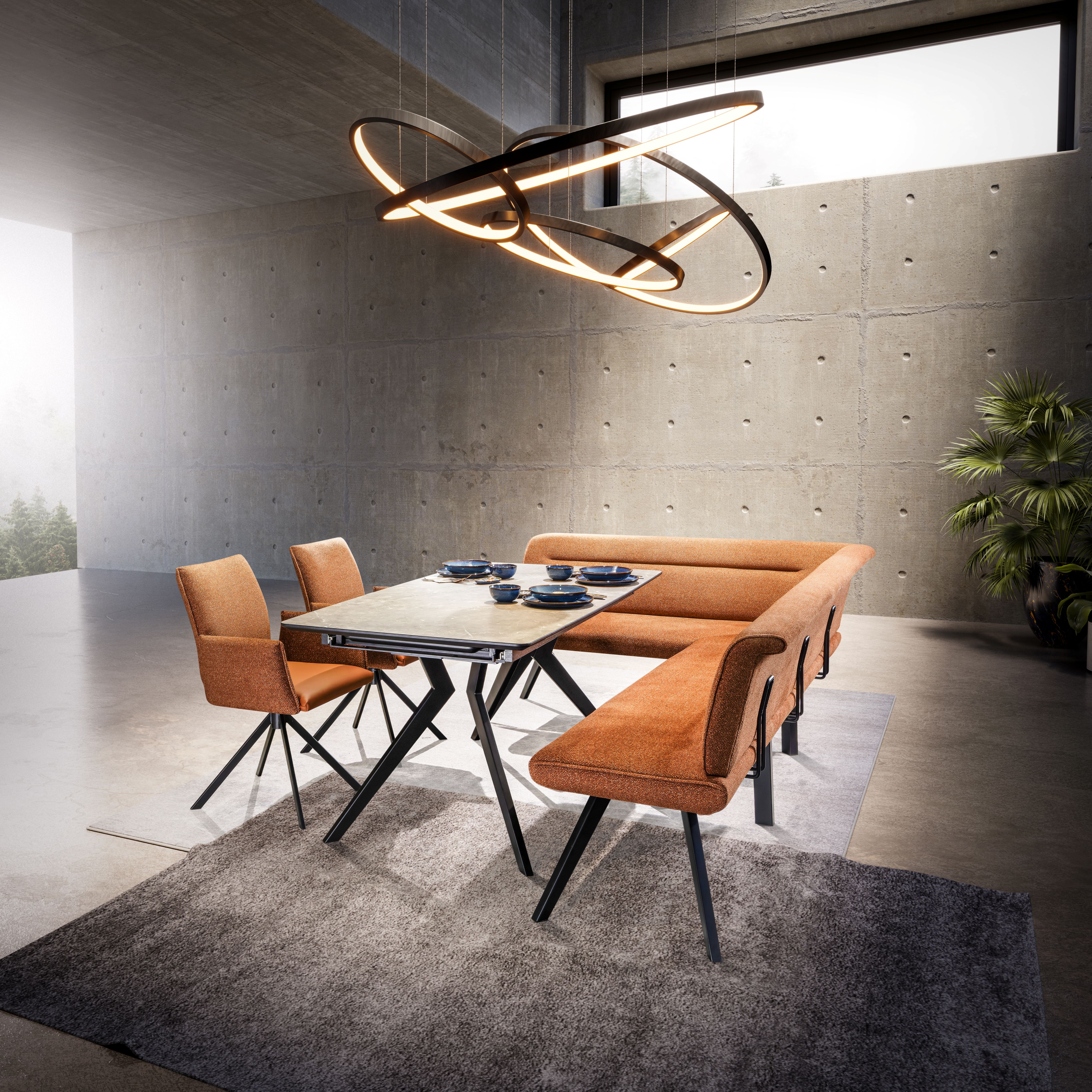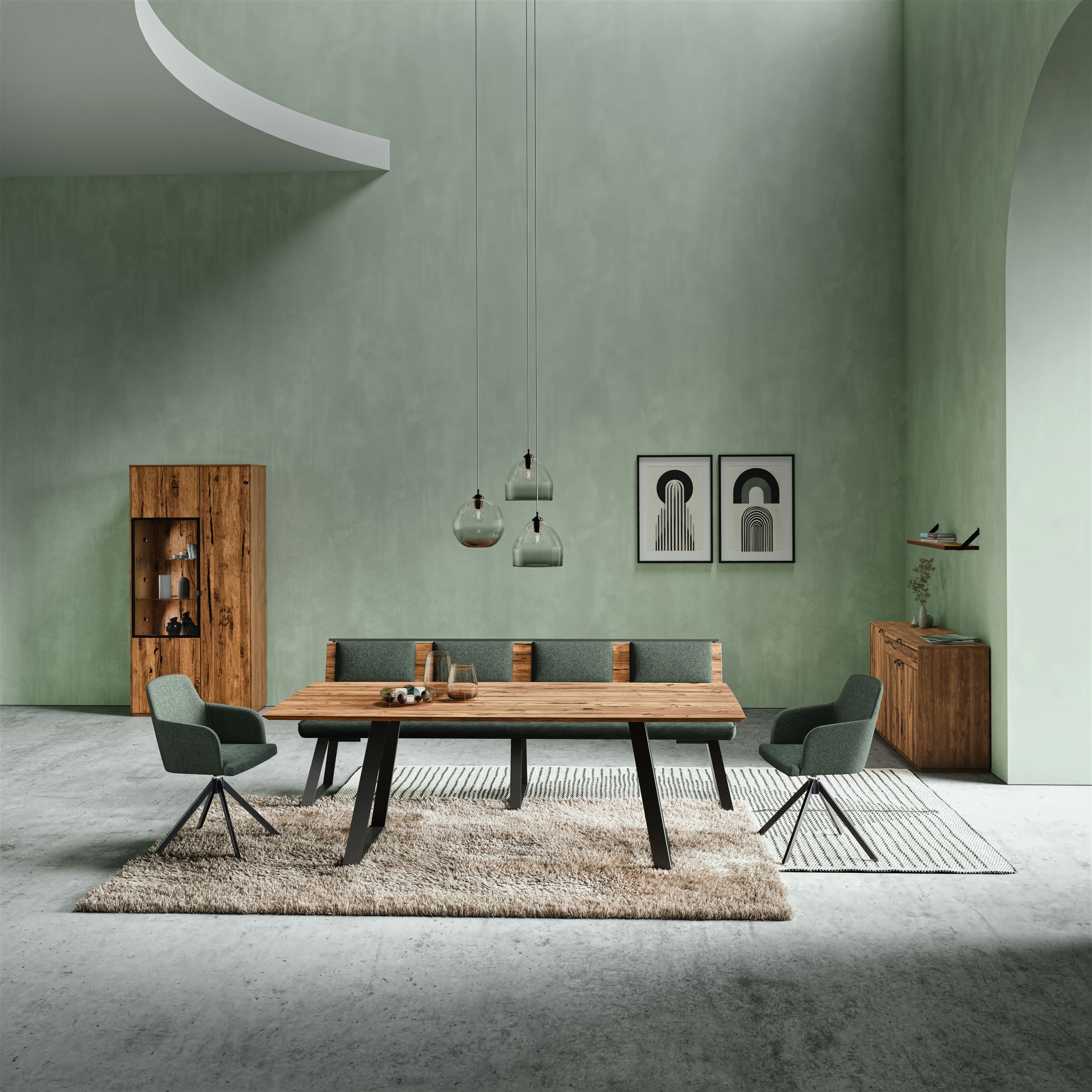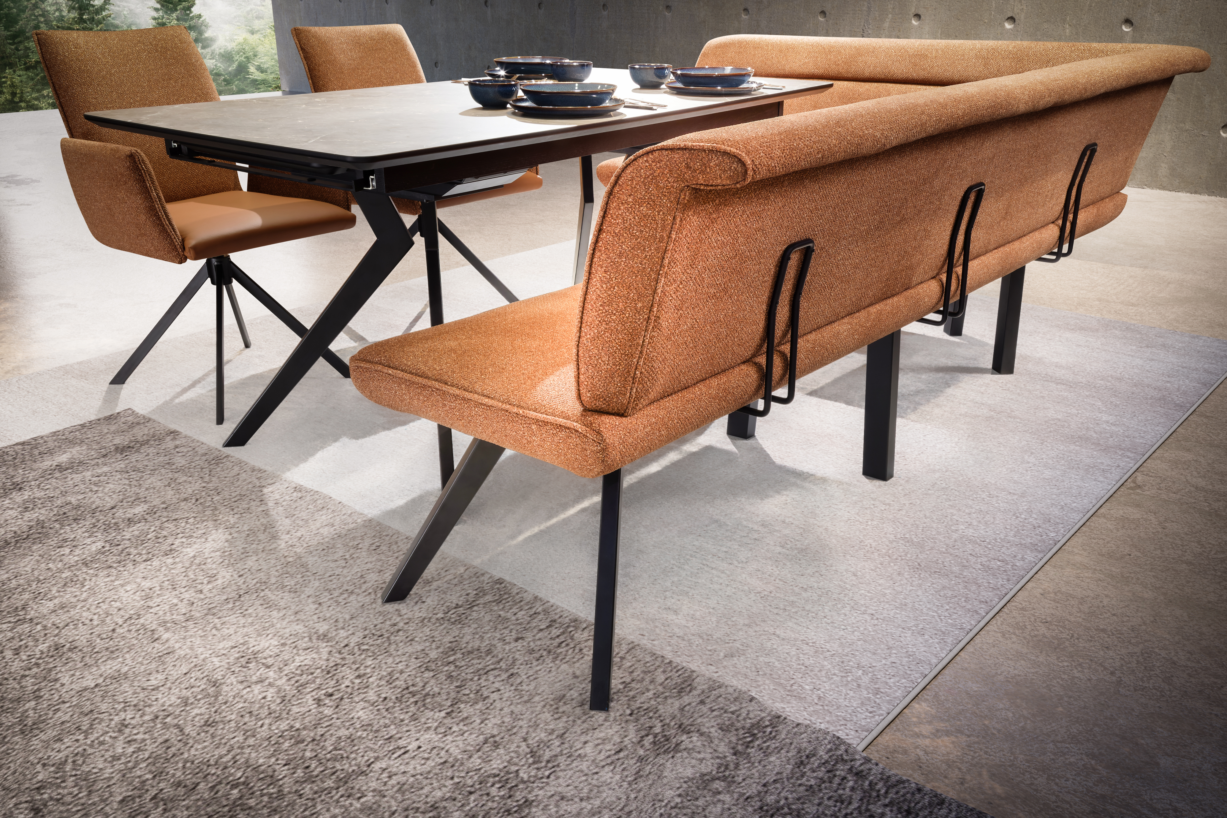 In der neusten Dining-Kollektion „Lassan“ vereinen sich beste Materialien und maßgeschneiderte Designs mit höchstem Sitzkomfort. Dank verschiedener Lehnenvarianten und individuell gestaltbaren Außenseiten lässt sich das Modell perfekt an unterschiedlichste Bedürfnisse anpassen. Ein besonderes Highlight ist die Holzart Kupfereiche, die in zwei Beiztönen erhältlich ist. Mit ihrer warmen, lebendigen Maserung schafft sie eine einladende Atmosphäre – ob in der offenen Wohnküche oder im eleganten Speisezimmer.
